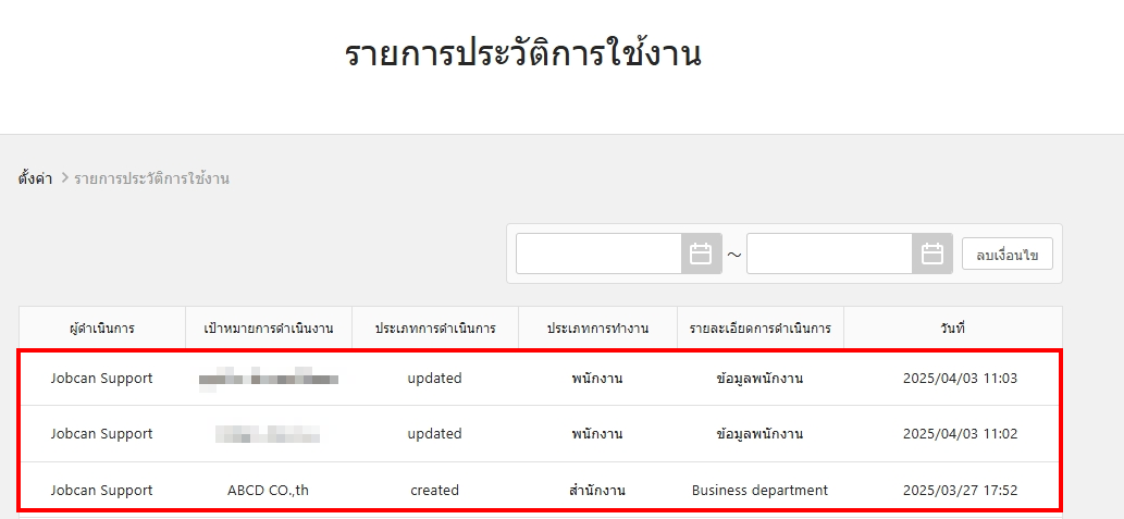 | ⑤ | วันที่ | วันที่และเวลาที่ดำเนินการ |
