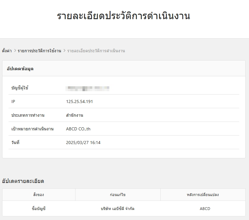 จากประวัติการดำเนินการ สามารถตรวจสอบได้ว่าใครเป็นผู้ดำเนินการ เมื่อใด และดำเนินการอย่างไร